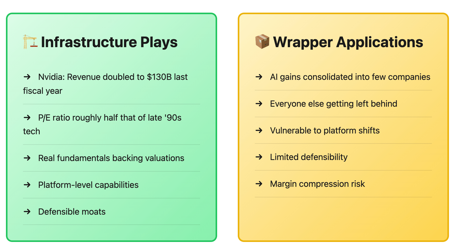 The question isn't whether AI is overhyped. The question is whether you're betting on the infrastructure that survives the shakeout.